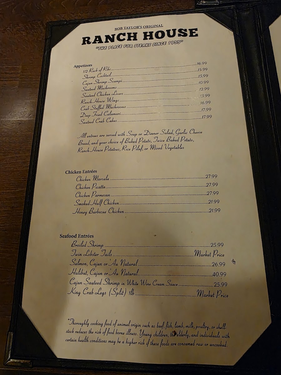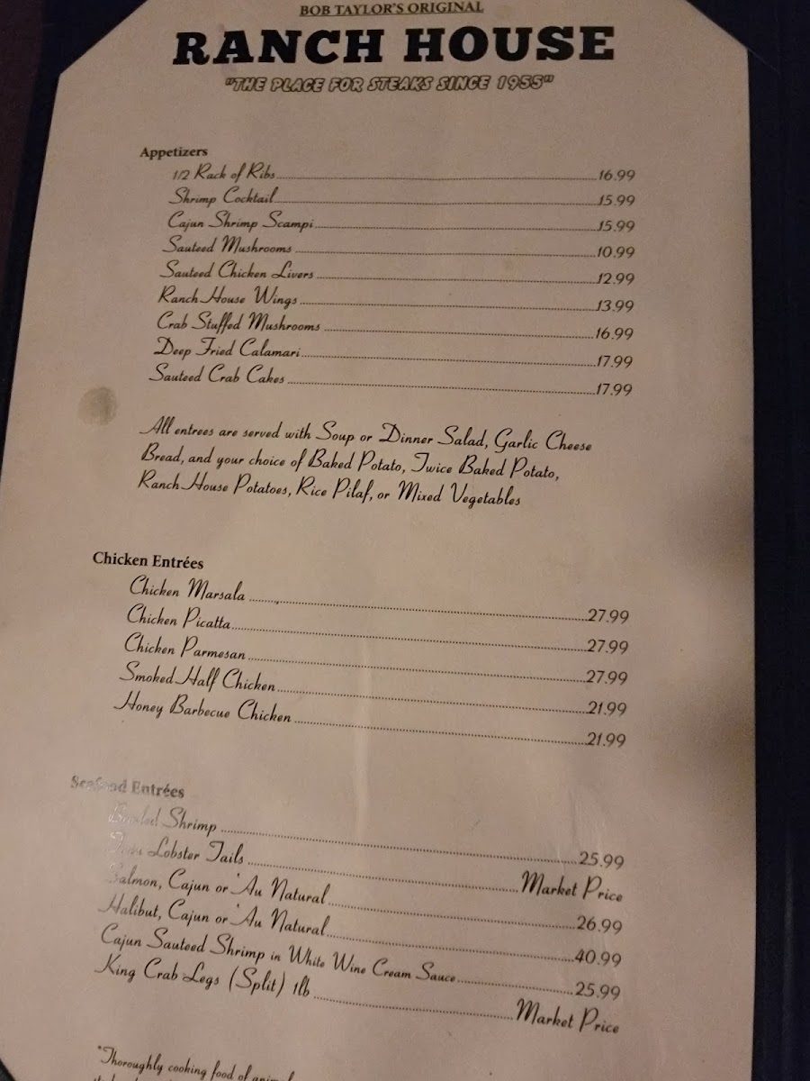 Bob Taylor's Ranch House Menu